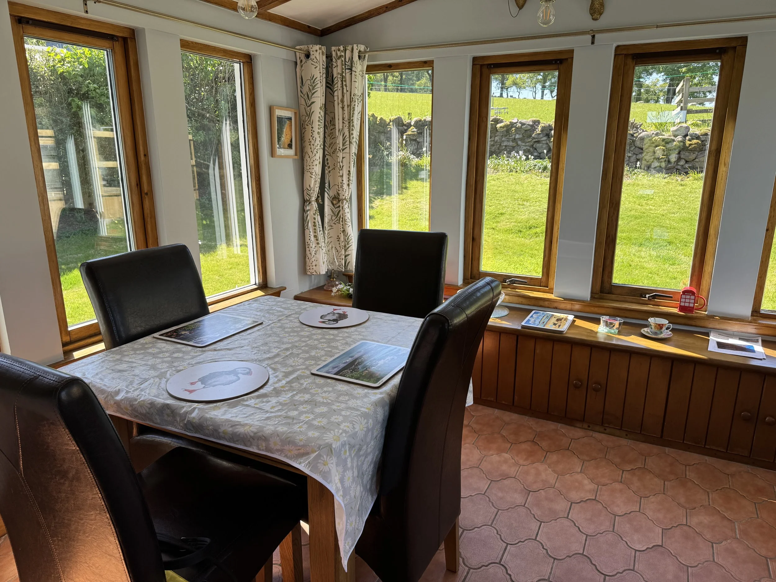 Inside, it’s large and decorated beautifully. The dining area has several windows, really light and airy. Well set up kitchen. The living room has some character, comfy furniture, wood burning stove and a large window with stunning views; perfect if you like wildlife spotting (we deer, hares, red squirrels, rabbits and numerous birds). Two bedrooms, again really comfortable, and a nice bathroom.
